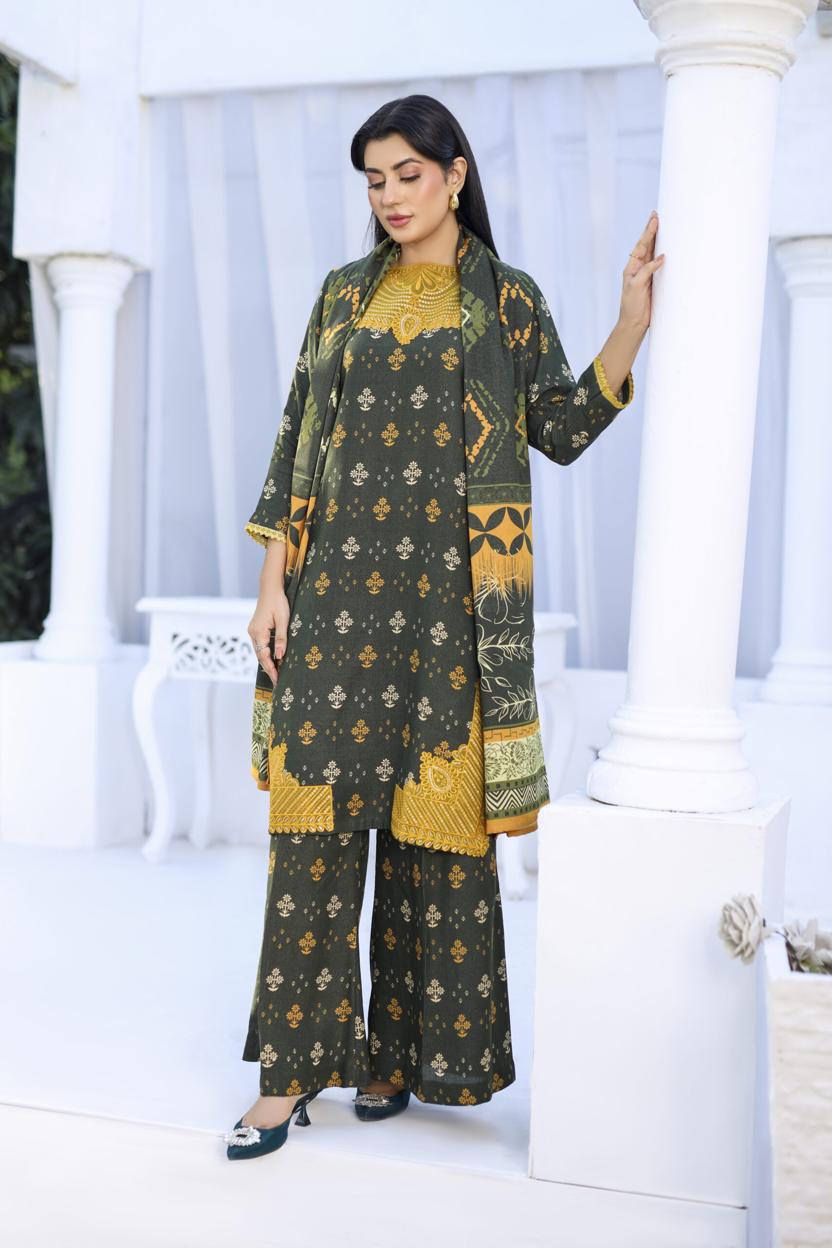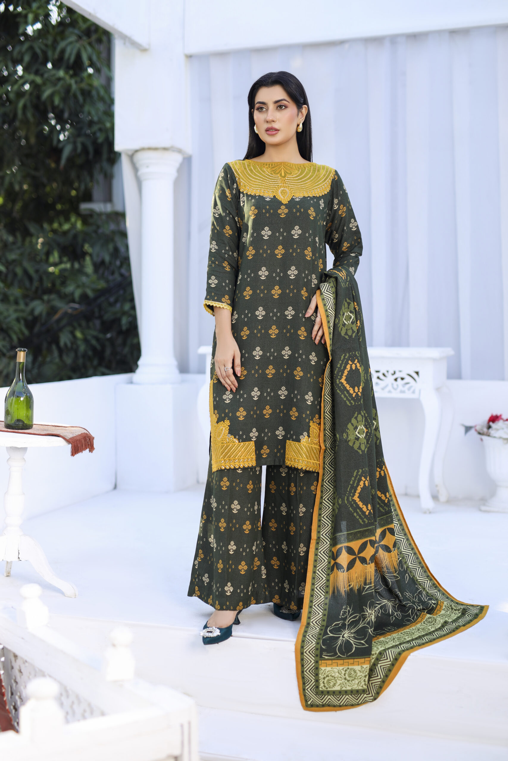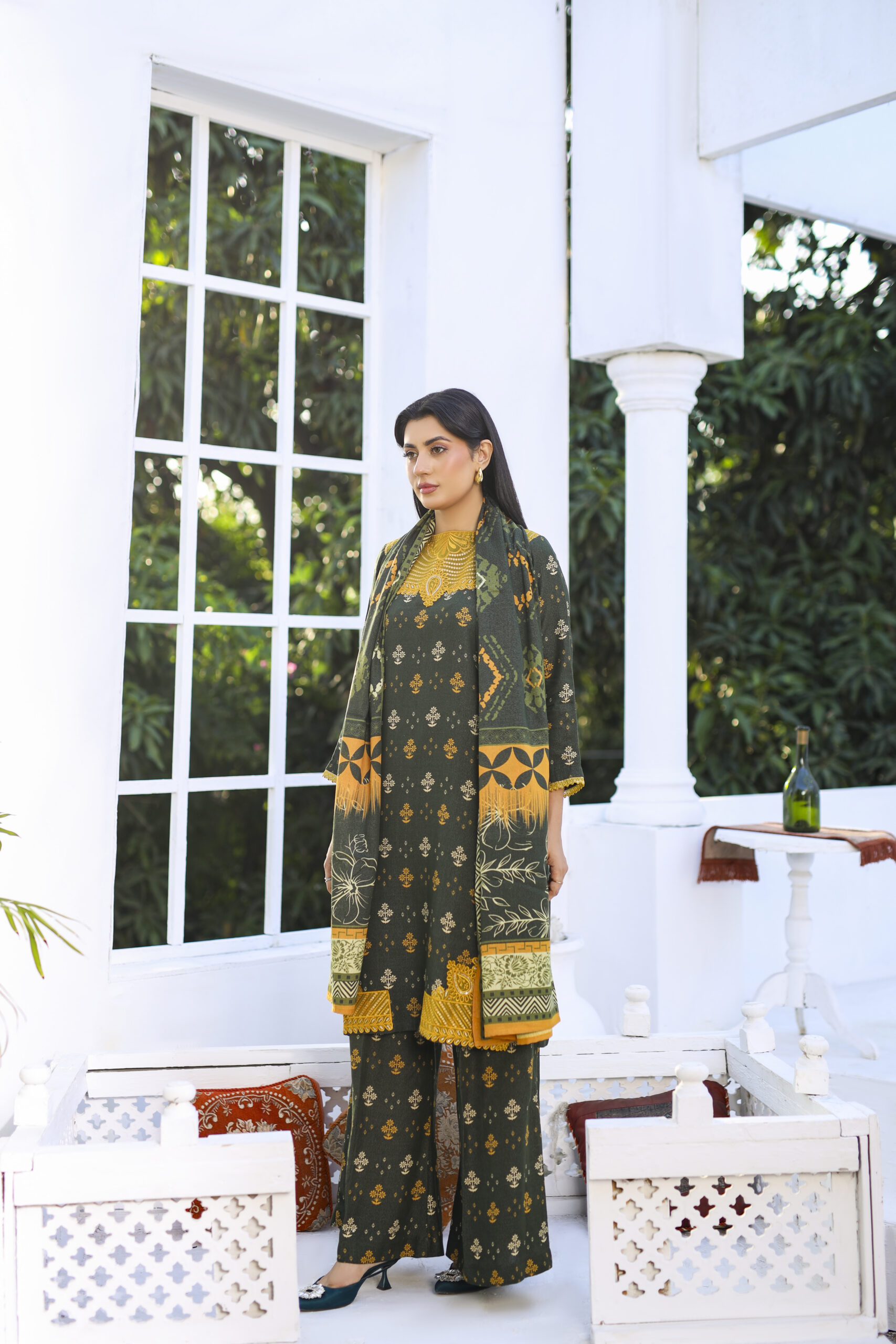Straight style shirt and falls to a long length, likely mid-calf. Slightly wide neckline features yoke area across the chest is distinct, being solid mustard with intricate embroidery and detailed sequin embelishment.