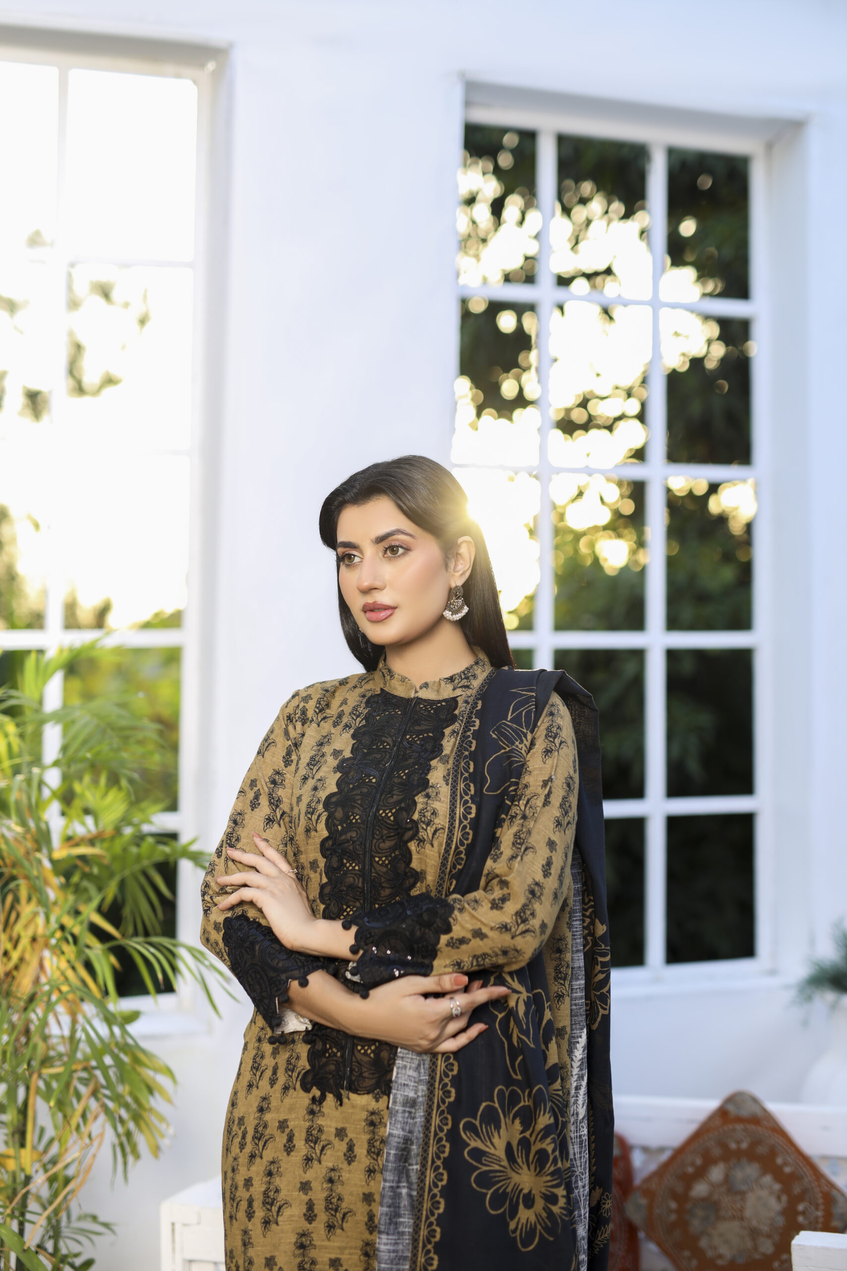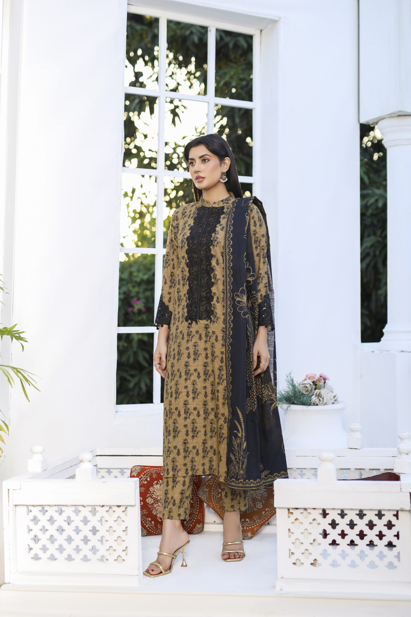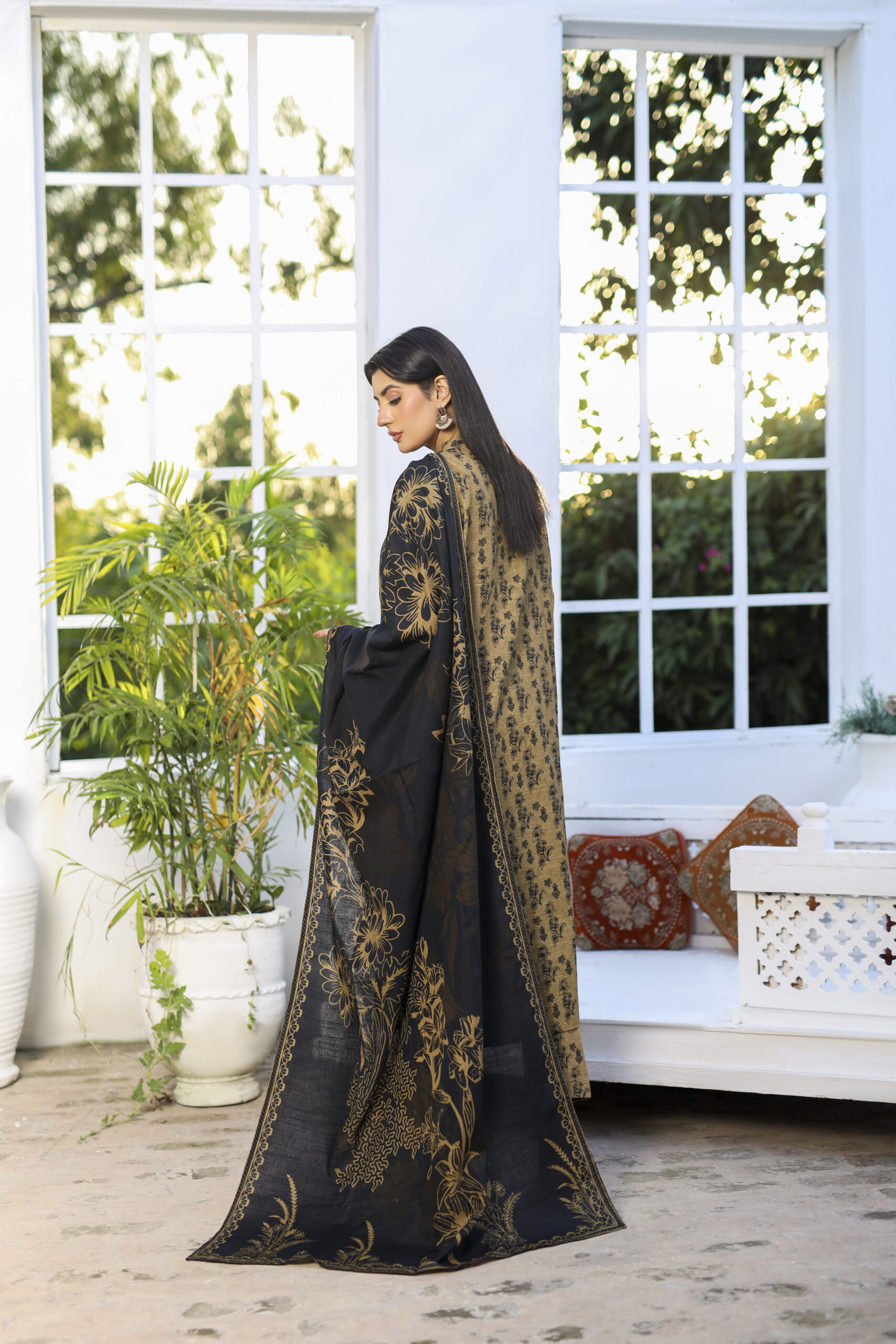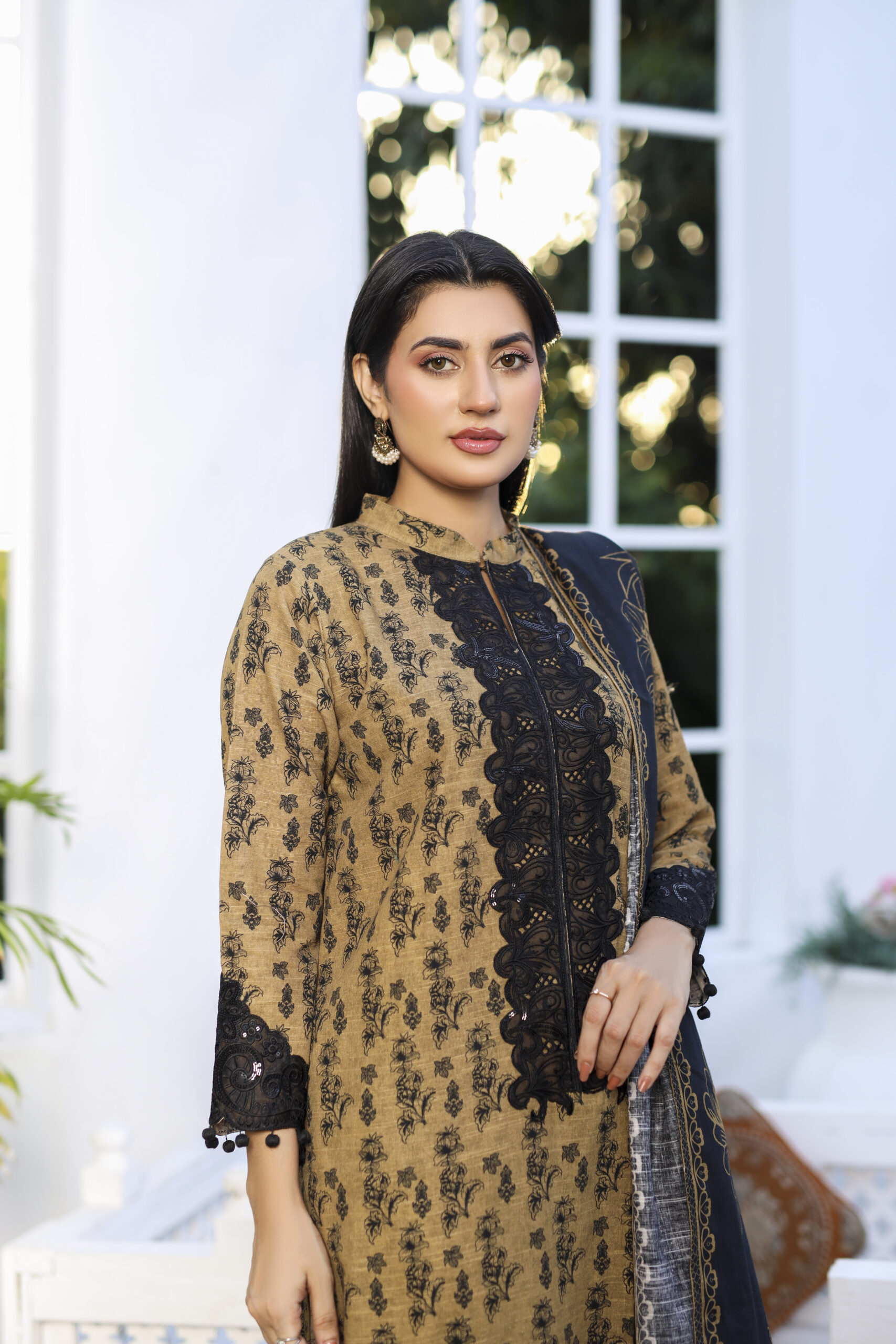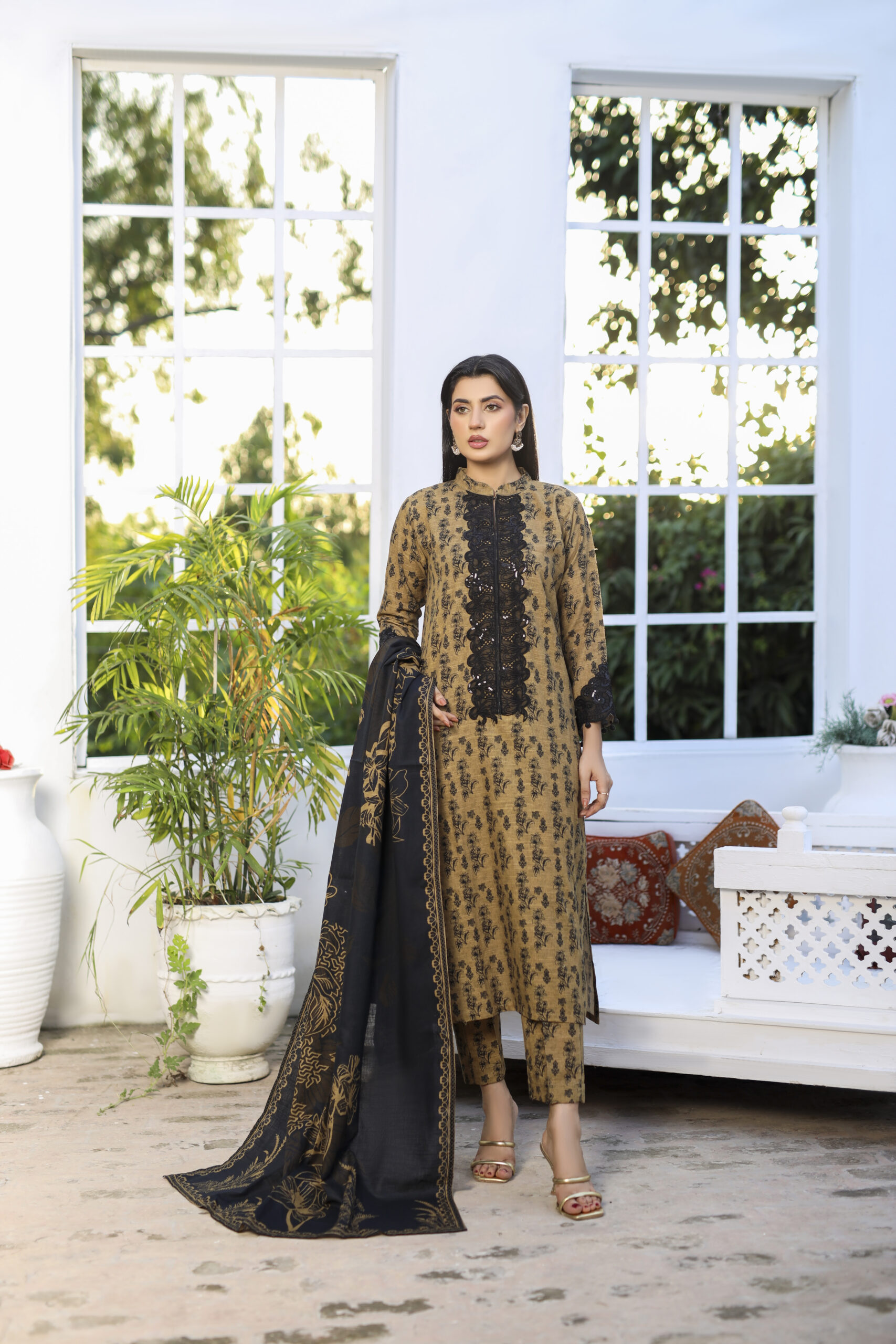 Straight-cut, long-length shirt features a bold black embroidered neckline downwards, adding a sophisticated touch. Closed neckline with embroidery and detailed sequin embellished placket.